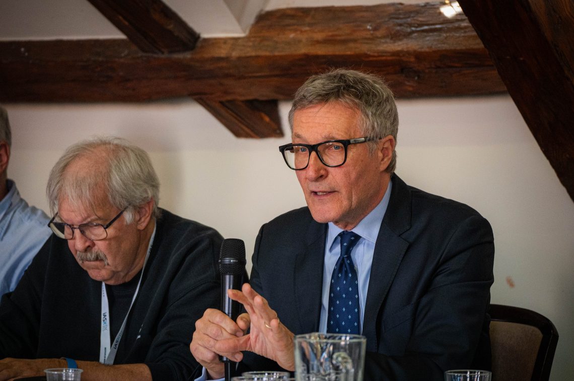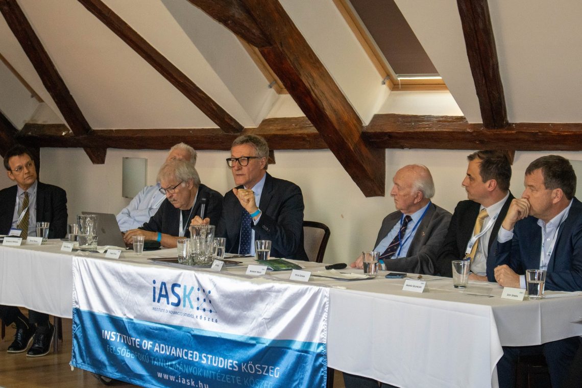 The first panel, “Paradigm Shifts in an Era of Escalation: Transformative Technologies, Conflict Dynamics, and Science Diplomacy,” addressed the intersection of scientific progress and international relations. Chaired by János Bogárdi (iASK, University of Bonn, Ludovika University of Public Service, Hungary), the session examined how technological advances are reshaping diplomacy and global security frameworks. Norbert Kroó (iASK, Hungarian Academy of Sciences, Hungary) and Tibor Tóth (Executive Secretary Emeritus, Comprehensive Nuclear-Test-Ban Treaty Organization) delivered keynote speeches, offering insights into how emerging technologies influence global governance. Panelists included Emil Brix (Diplomatic Academy, Austria – online), Daniel Brooks (iASK, University of Toronto, Canada), Dezső Boda (University of Pannonia, Hungary), Péter Dombi (Wigner Research Centre for Physics, Hungary), András Gelencsér (University of Pannonia, Hungary), Jody Jensen (iASK, Hungary), and Szabolcs Márka (Columbia University, USA). Their discussions highlighted the role of science diplomacy in fostering peaceful cooperation and mitigating geopolitical tensions.
