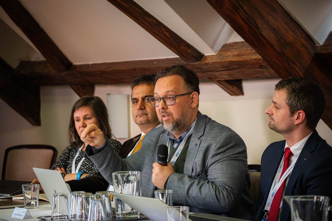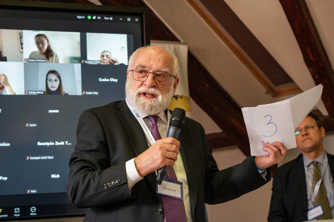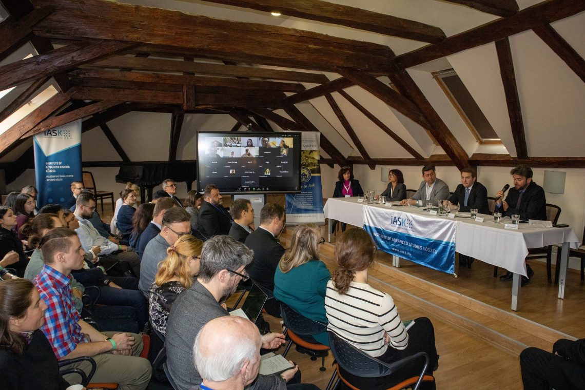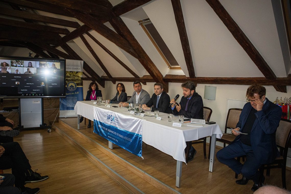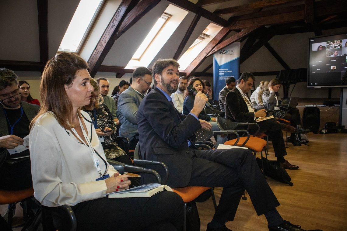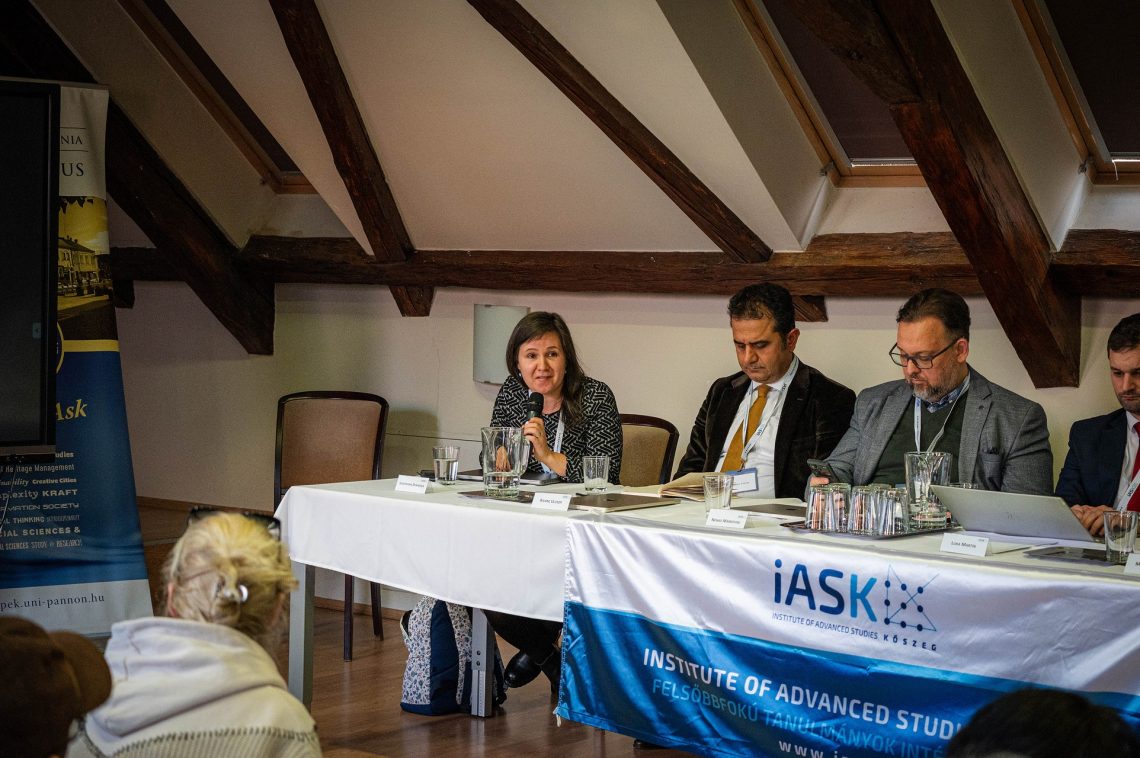 In the afternoon, the second session, “Forging Global Peace and Security: Governance, Justice, and Equality in a Turbulent World,” expanded on the themes of international collaboration and governance. Ferenc Miszlivetz (iASK, Hungary) chaired the session, which brought together perspectives on security, justice, and equitable governance. Panelists Sean Cleary (Strategic Concepts, South Africa – online), Jekatyerina Dunajeva (Budapest Corvinus University, Hungary), Stephanie Fenkart (International Institute for Peace, Austria), Miklós Király (ELTE, Hungary), Nenad Markovikj (Cyril and Methodius University, North Macedonia), Luka Martin Tomažič (Alma Mater, Slovenia), and Kıvanç Ulusoy (Istanbul University, Turkey) engaged in a critical discussion on global governance in times of crisis, emphasizing the importance of inclusive and participatory policy frameworks.