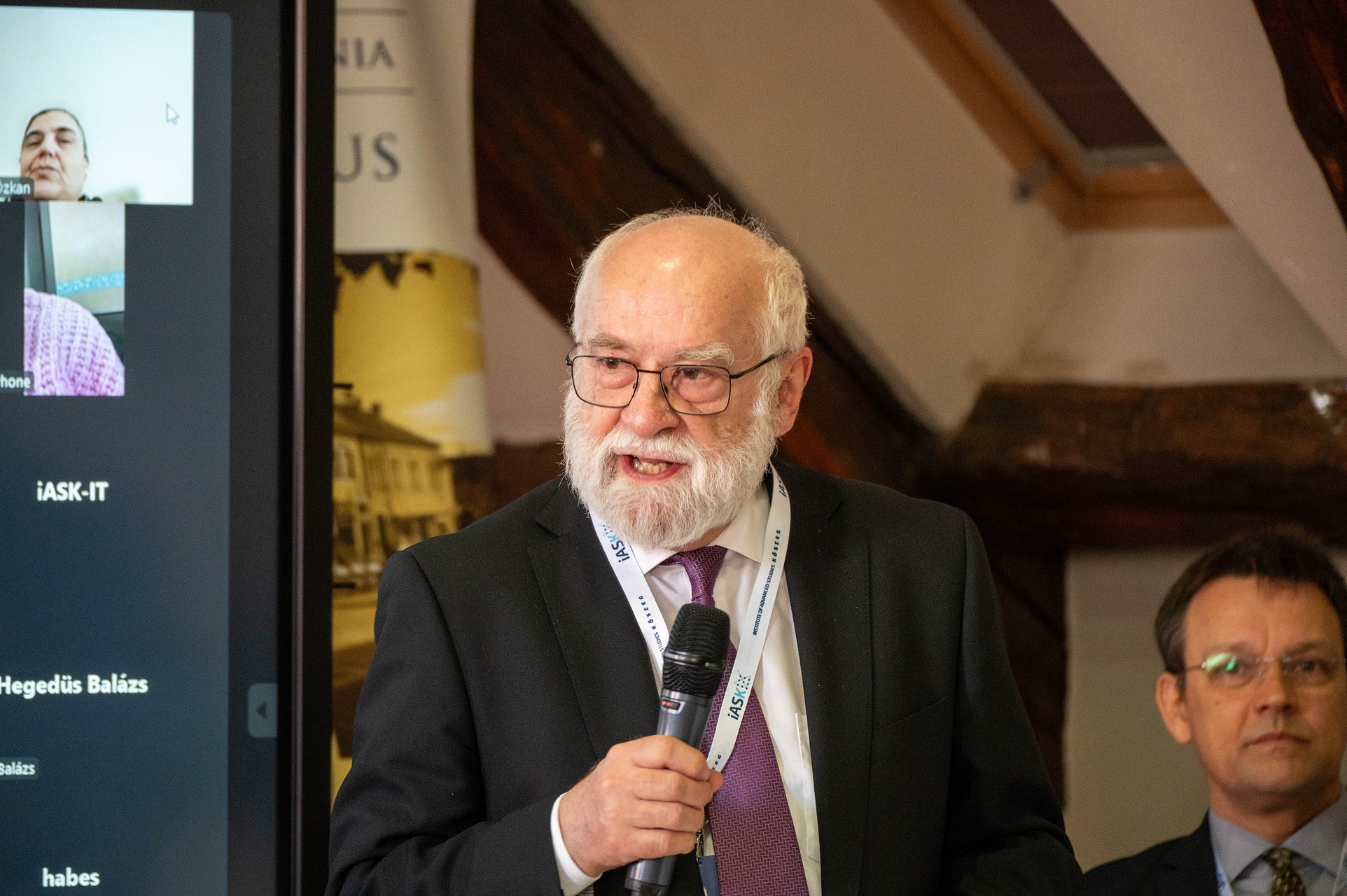 Idős férfi beszél a 7. UNESCO MOST Téli Iskola megnyitóján. Tudományos diplomácia.