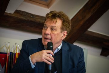 Férfi beszél mikrofonba a 7. UNESCO MOST Téli Iskola megnyitóján.