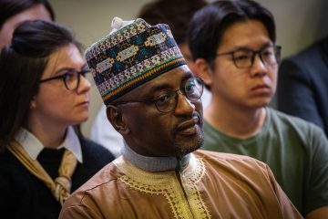Férfi hagyományos afrikai fejfedőben és ruhában, a "Cultural Heritage" rendezvényen.
