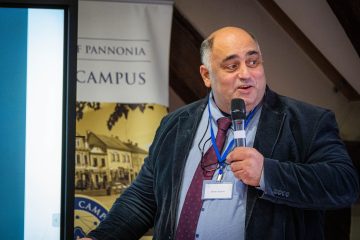 Előadó a Pannon Egyetem kampuszán, a "Cultural Heritage" téli iskola második napján.