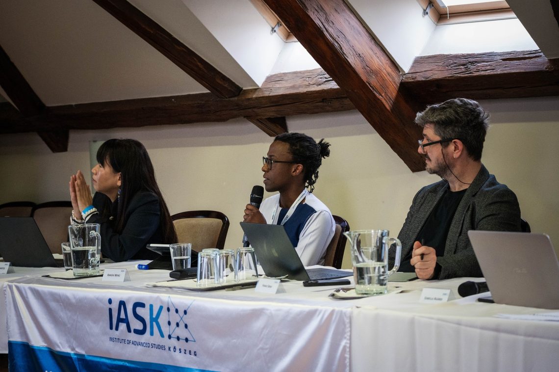 The day began with the panel “Frontiers of Technology: Political, Cultural, and Ethical Dimensions of AI and Robotics.” Chaired by László Karvalics (iASK, Hungary), the session explored the rapidly evolving influence of AI and robotics on politics, security, social systems, and even armed conflicts. Keynote speaker Roland Jakab (Chief Executive Officer, HUN-REN, President of MI Koalicio, Hungary) provided an overview of AI’s transformative potential and the regulatory challenges it poses in contemporary societies. The discussion was further enriched by the insights of David Daou (UNU-EHS, Germany), Zsuzsanna Márka (Columbia University, USA), Levente Szabados (Foundation for Information Society, Hungary), and Attila Tanyi (University of Tromsø, Norway), who critically examined how AI-driven decision-making affects governance structures and ethical considerations surrounding automation and labor markets.