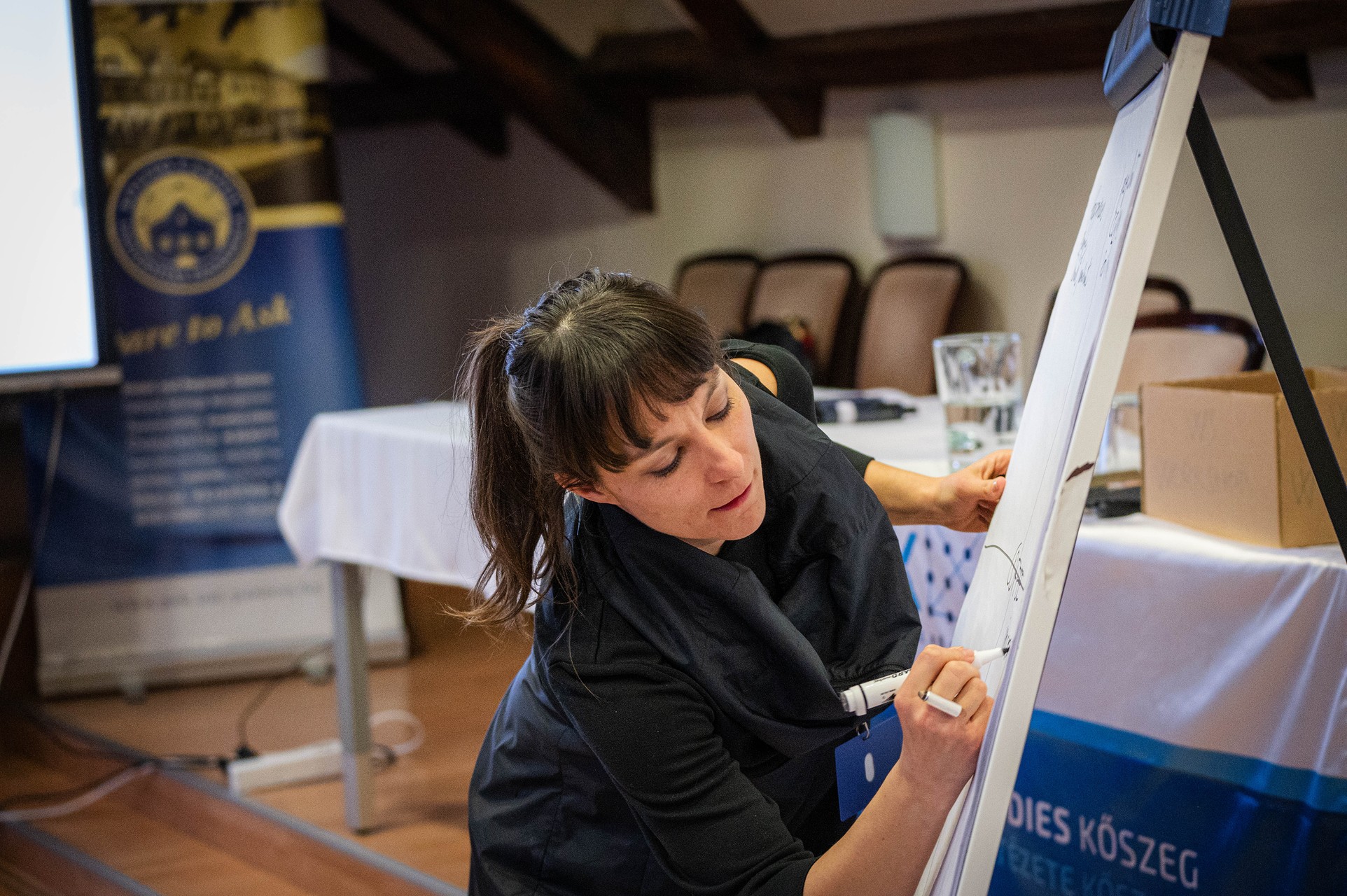 Előadó rajzol a táblára a UNESCO MOST Winter School rendezvényen.