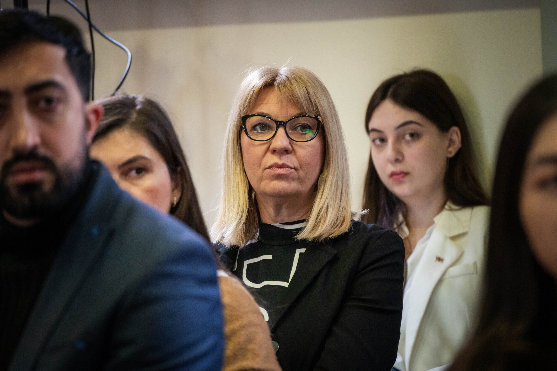 Nő szemüvegben, a UNESCO MOST Téli Iskola 7. napján. Globalizáció, jog, jövő.
