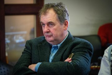 Férfi komoly arccal, keresztbe tett karokkal. A UNESCO MOST Téli Iskola előadója.
