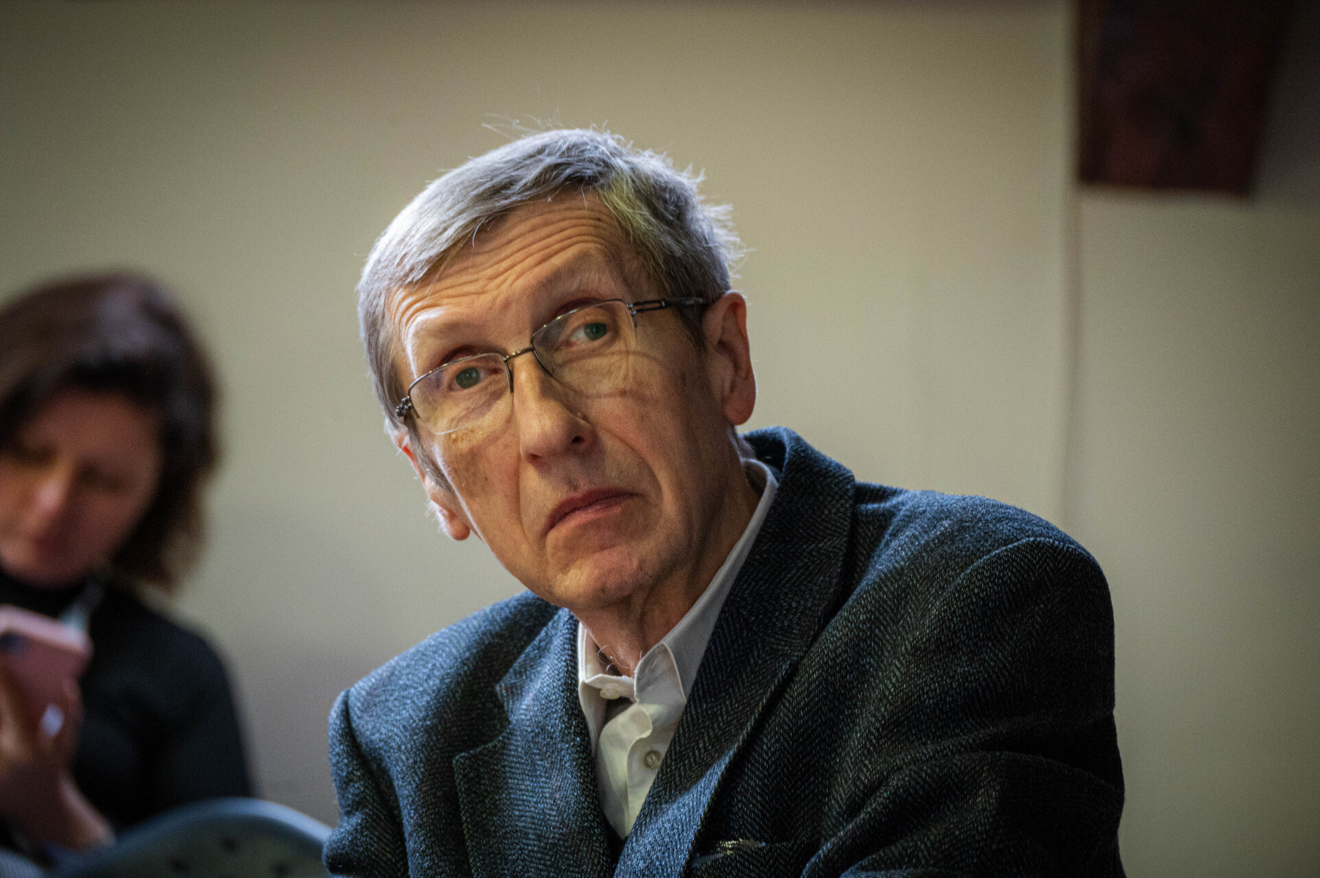 Idős férfi szemüvegben, szürke zakóban a 7. UNESCO MOST Téli Iskola negyedik napján.