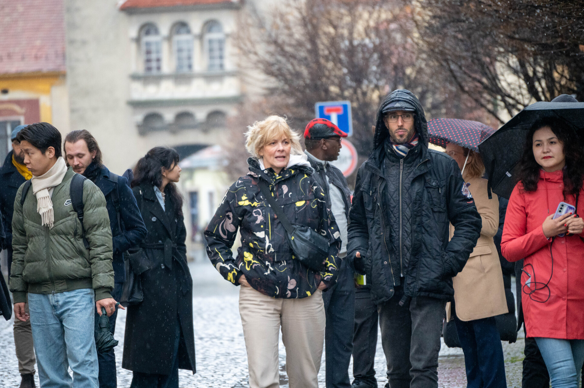 Emberek az UNESCO MOST Téli Iskolán, az időjárás borongós.