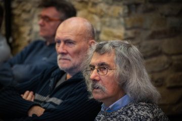 Hallgatóság a UNESCO MOST téli iskola negyedik napján. Fókuszban egy idős férfi.