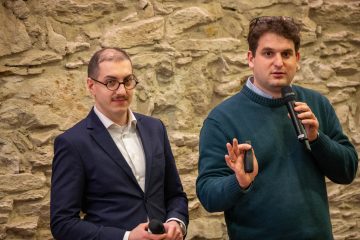 Két férfi előadást tart a UNESCO MOST Téli Iskola 7. napján.