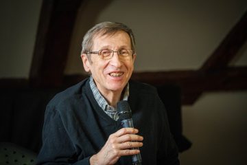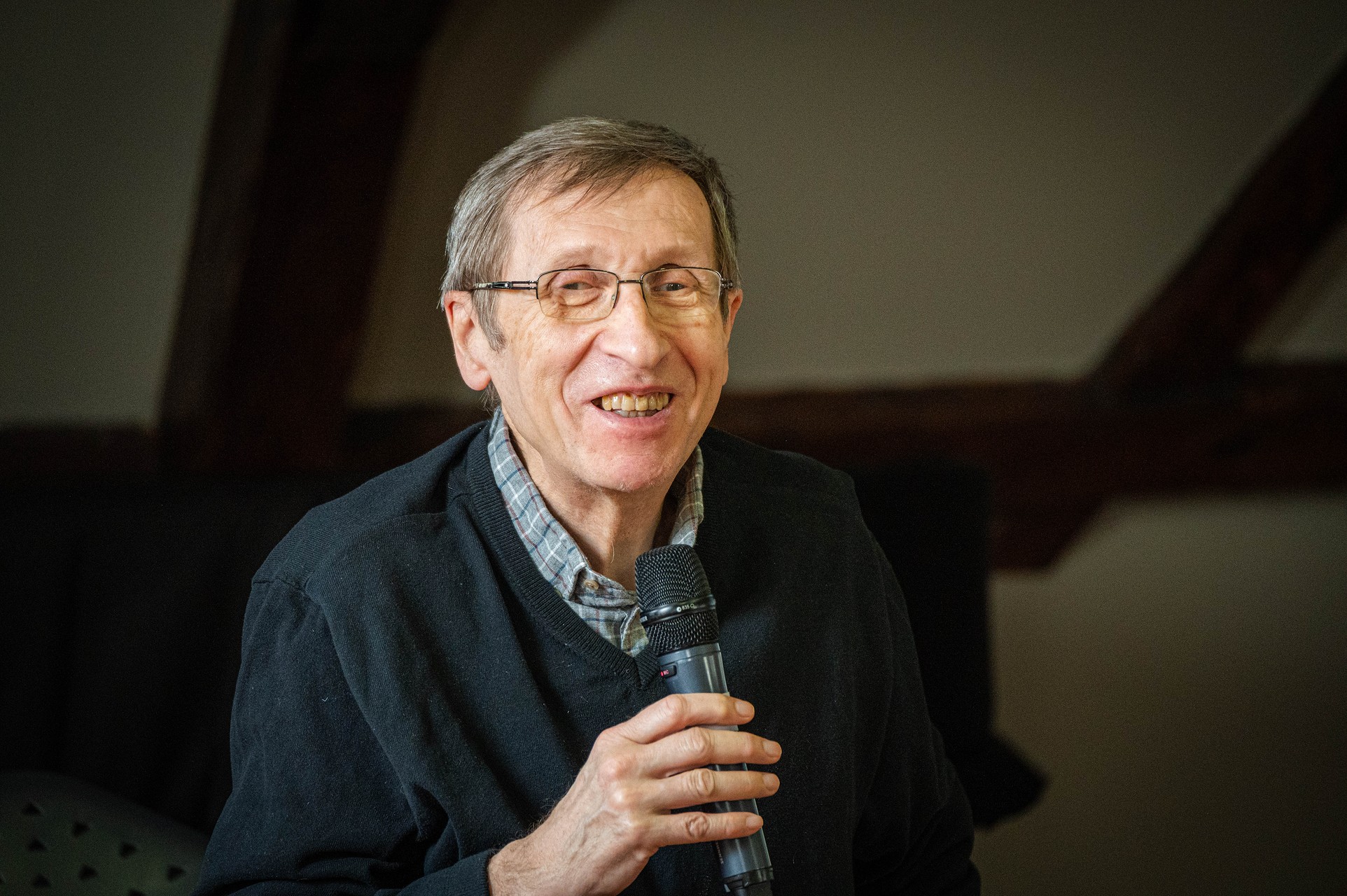 Férfi mikrofonnal, előadás a UNESCO MOST Téli Iskolában