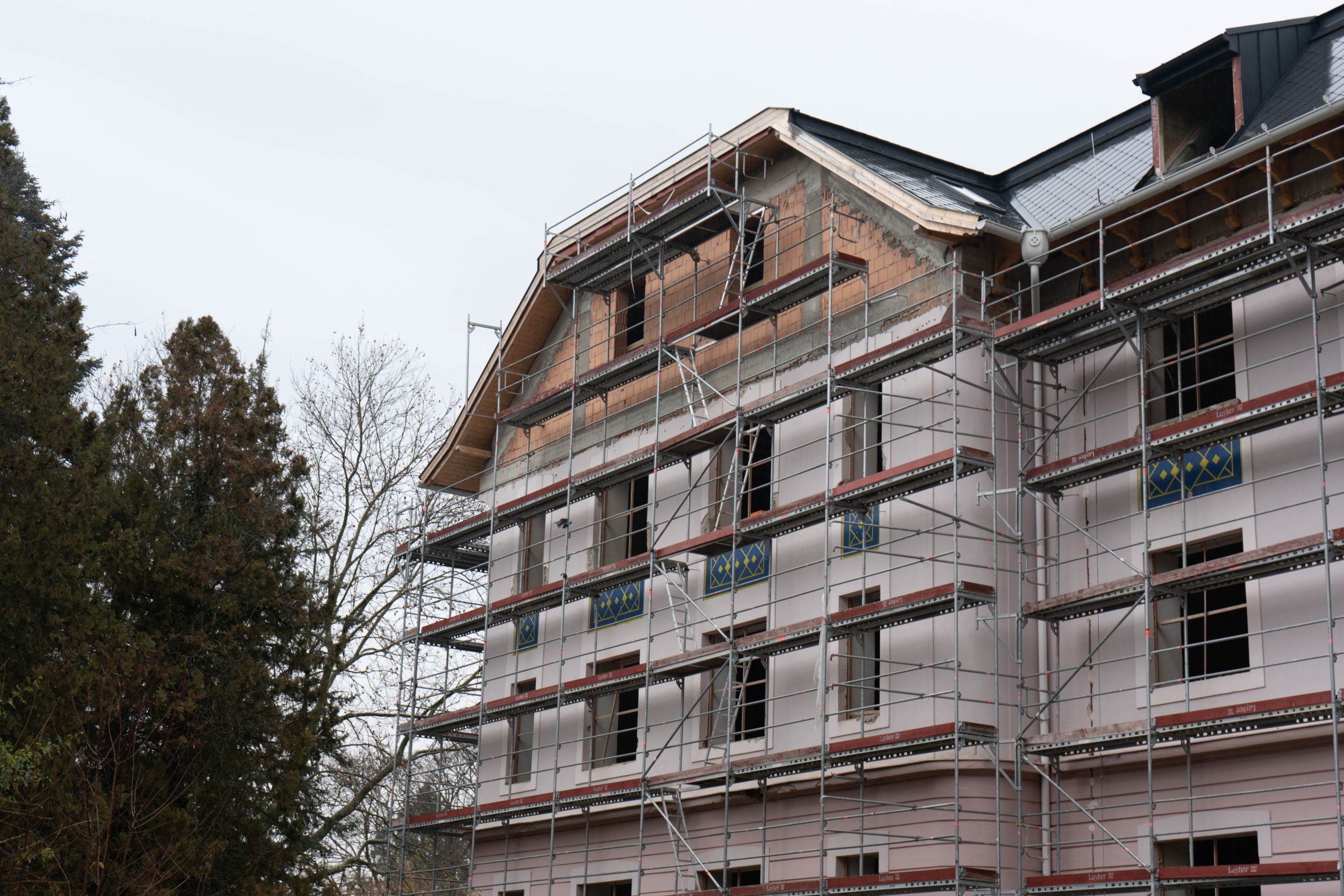 Épülő épület Kőszegen állványzattal. Folytatódik a Kutatási és Fejlesztési Központ építése.